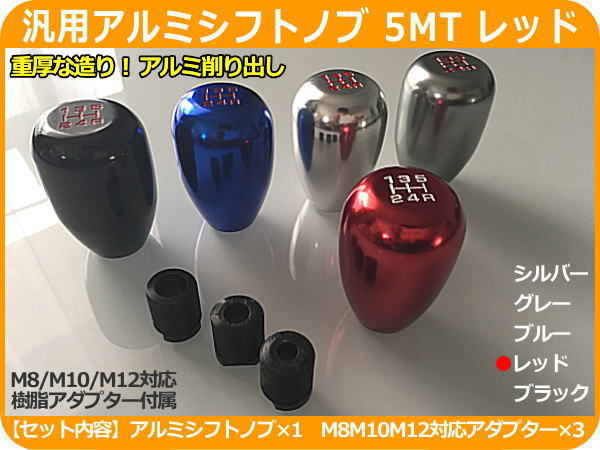 - 汎用アルミシフトノブ 5MT M8/M10/M12アダプター付属 レッド