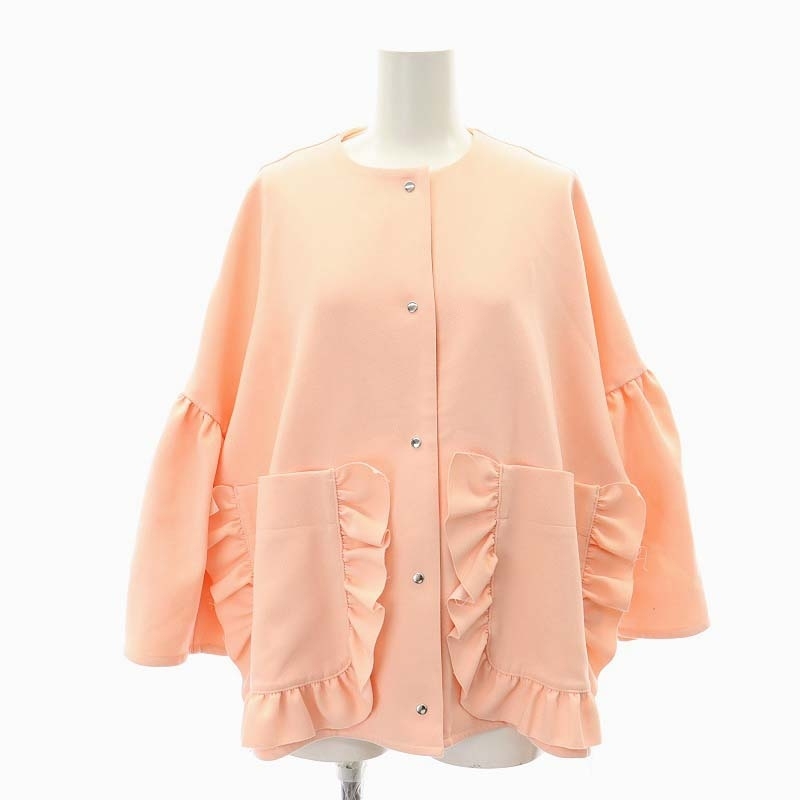 > ヨリ yori 22SS ポケットフリルジャケット ノーカラー 薄手 フレアスリーブ F ピンク /DO ■OS レディース