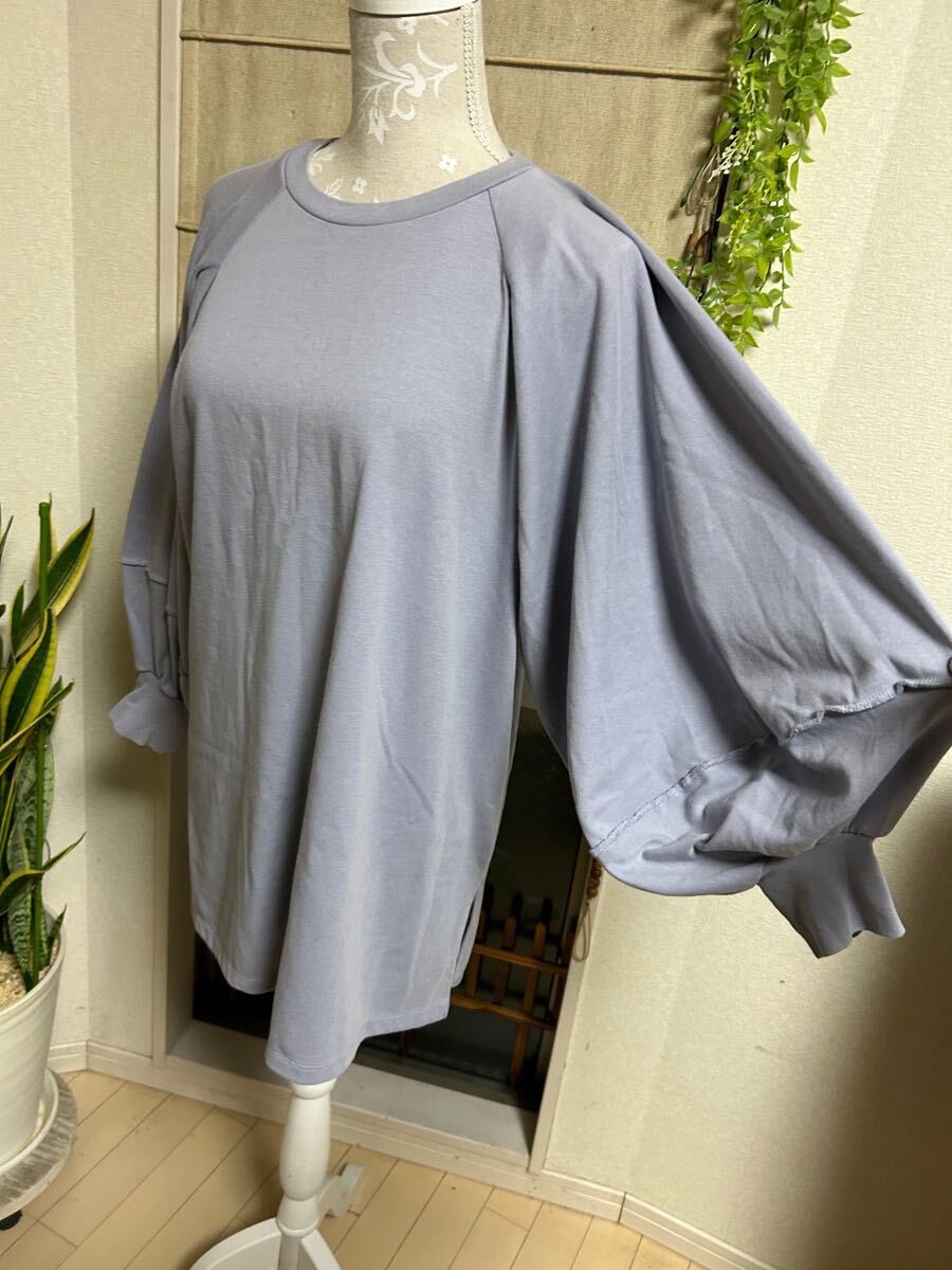- 【 kastane★カスタネ】トップス・バルーン袖チュニックTシャツ・やや生地厚・パープル系・Fサイズ