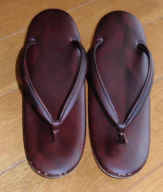 - レザー調表の草履/マーブル模様/ブラウン系/23.5㎝