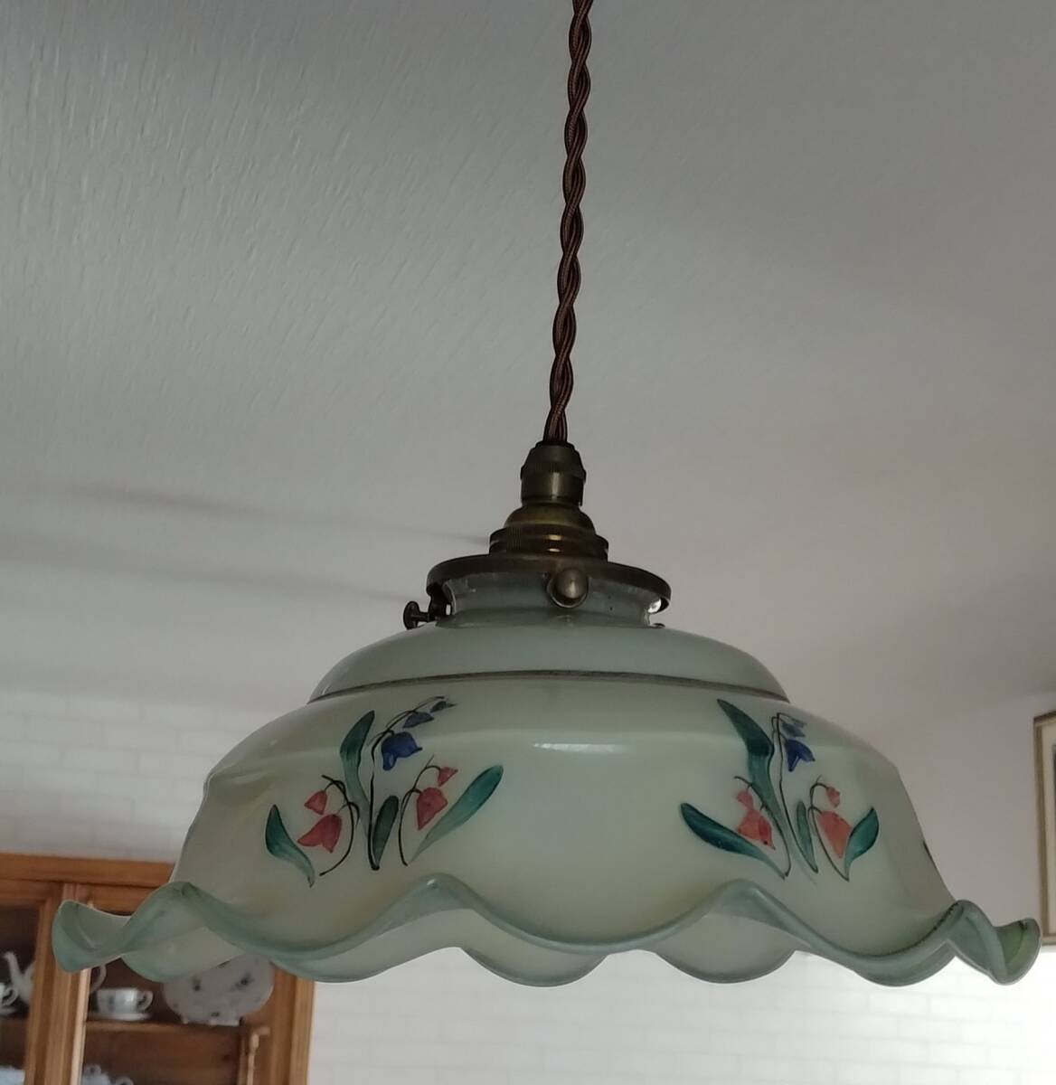 - イギリス アンティーク ランプシェード ペンダントランプ ソケットコード付き 被せガラス すりガラス 古民家 店舗 電笠 モスグリーン