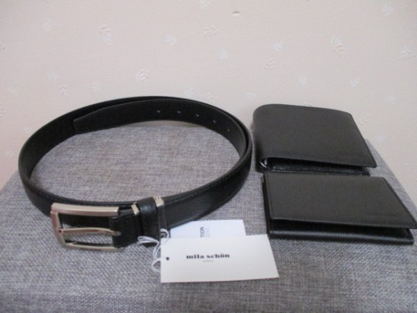 - ◆ ミラショーン ◆ 財布 名刺入れ ベルト 3点セット 黒 牛革 未使用タグ付き