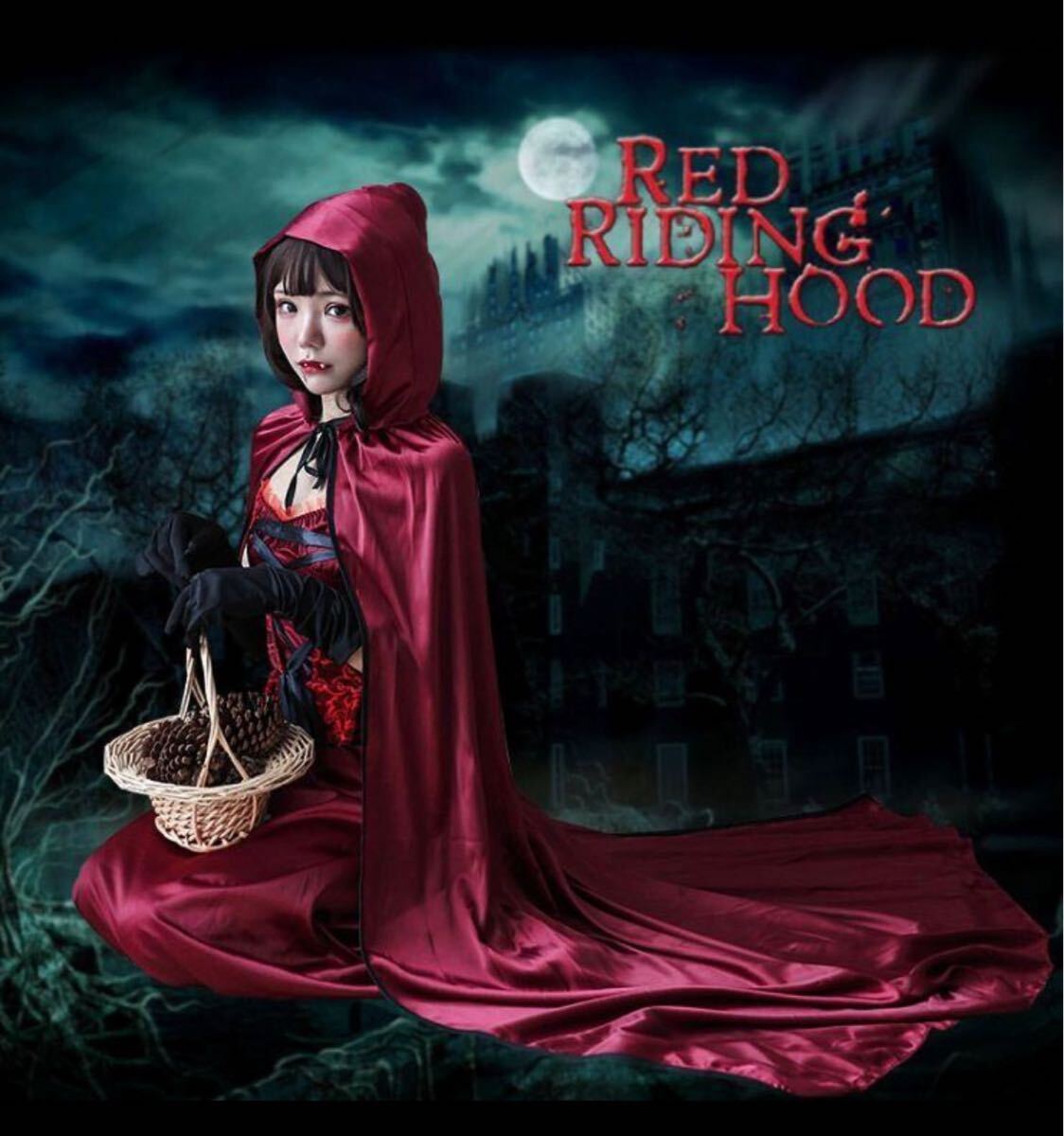 > ハロウィン用ロング赤ずきんコスプレ衣装 3点セットヴァンパイアクイーンレッドワンピース花嫁