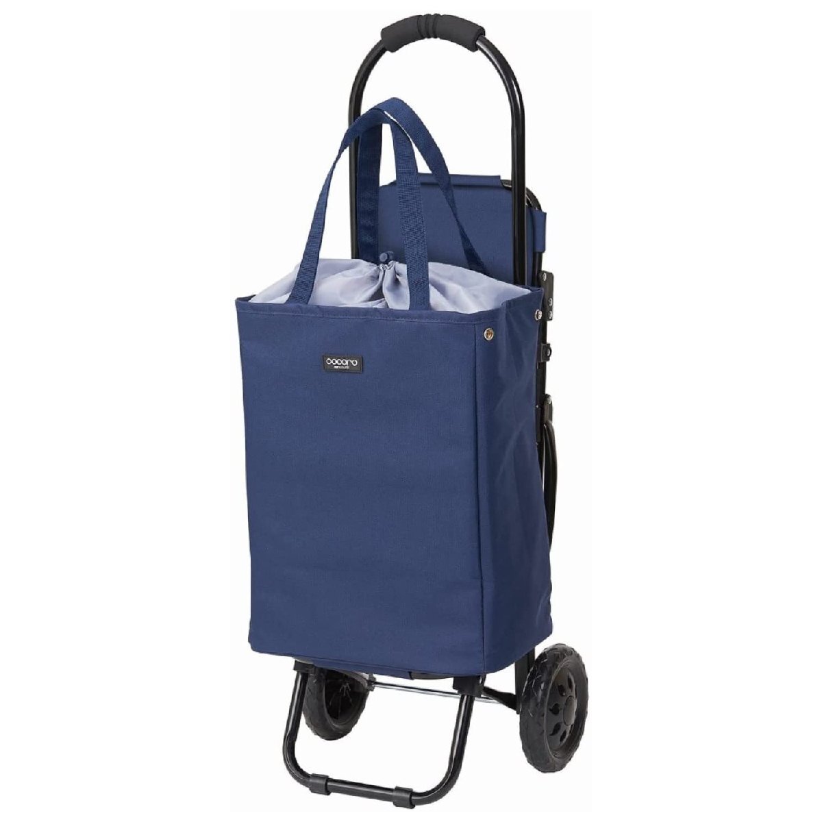 - 保冷 保温 スチールフレームで軽くて丈夫なショッピングカート 30×18.5×高さ40.5cm ネイビー トートバッグにも 折り畳みイス
