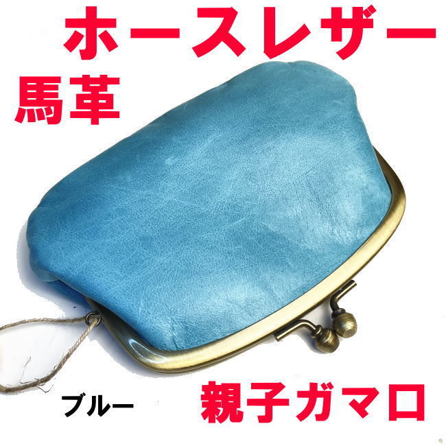 - ブルー 馬革 ホースレザー 5300 親子がま口財布 ハンドメイド 日本製
