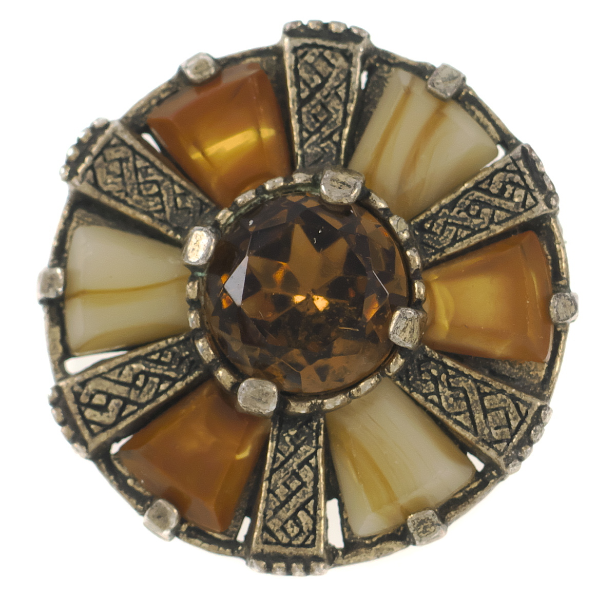 - UK2422◆【MIRACLE】◆ フラワーモチーフ ブラウン系&ベージュ系ストーンの花 ミラクル ケルト イギリス ◆ ヴィンテージブローチ ◆