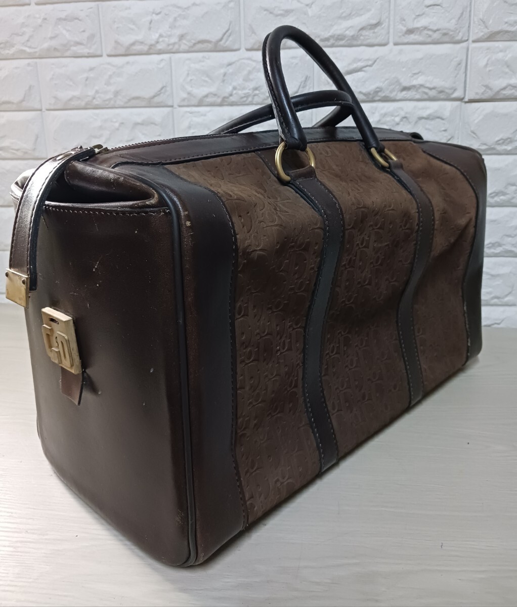 - 貴重 Dior 本皮 トロッター柄 ボストン 押型 ボストンバッグ レザー ヴィンテージ 旅行 大容量 スウェード (F上)