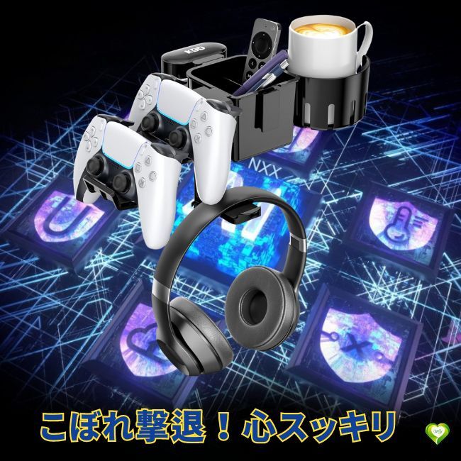 - 【こぼれ撃退!心スッキリ】カップホルダー 2色展開 デスクオーガナイザー 5in1 ヘッドホンスタンド コントローラーホルダー 整理整頓 快適