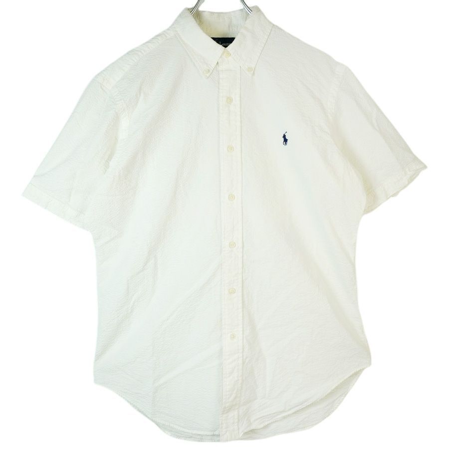 - ラルフローレンRalph Lauren半袖ボタンダウンシャツリップル生地ポニーロゴ刺繍ワンポイント白ホワイトClassicfitクラッシック40308