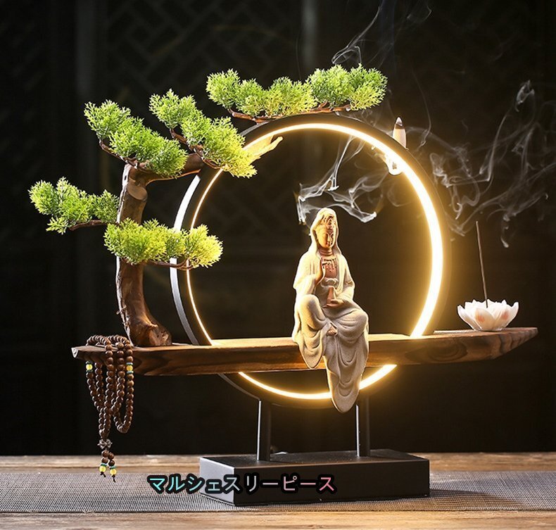 - 仏教美術 観音 仏像 仏教美品 台座付き ライト付き インテリア 装飾品 工芸品 禅の置物 逆流香