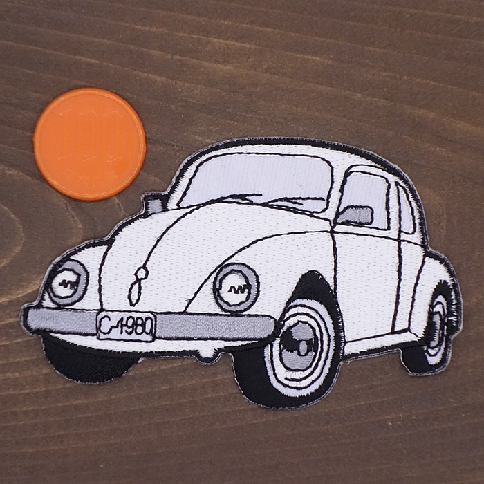 - 【送料無料】アイロンワッペン フォルクスワーゲン 白色 ワーゲン ビートル VOLKSWAGEN アップリケ