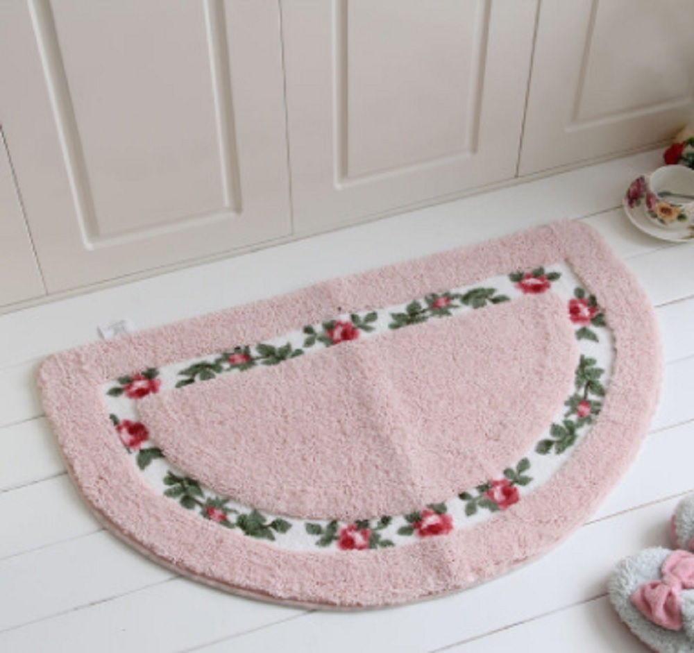 - 玄関 マット キッチン 台所 バス 浴室 寝室 トイレ ハート 型 滑り止め 花柄 半円 ピンク ZCL359