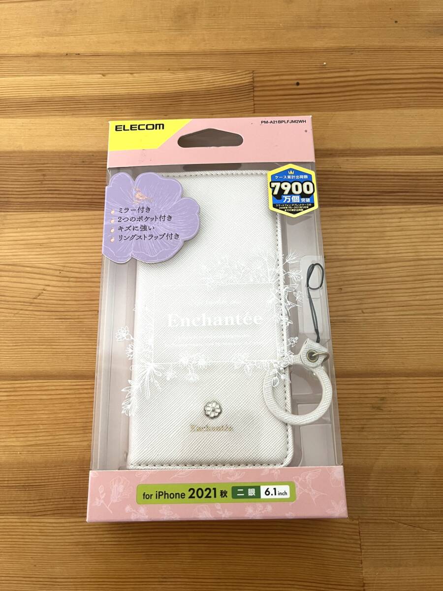 - エレコム iPhone 13用レザーケース ホワイト Enchante'e 手帳型 ソフトレザー 磁石付き リング付き PM-A21BPLFJM2WH