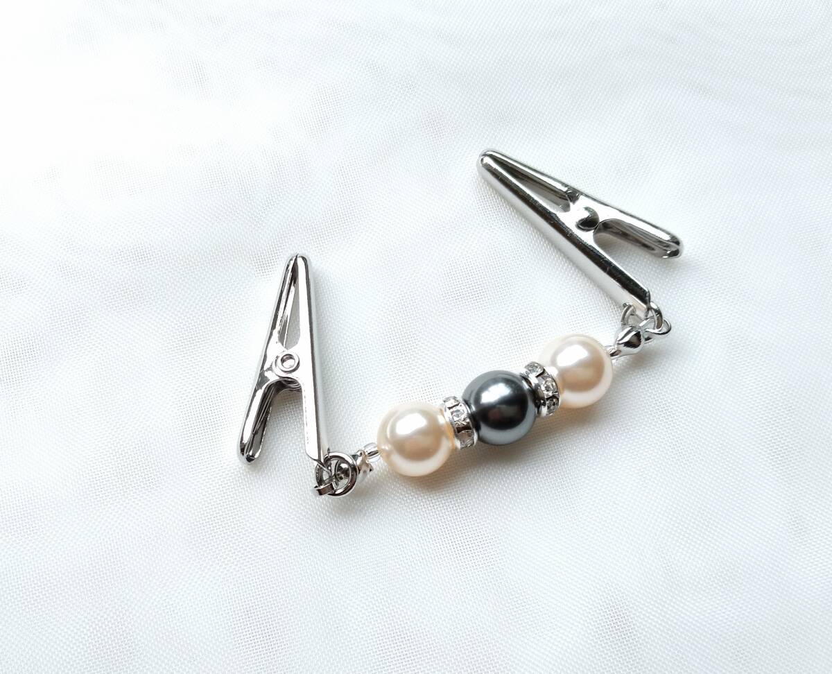 - ミニストールクリップ スワロフスキーパールのショール留め ショートクリップ グレー