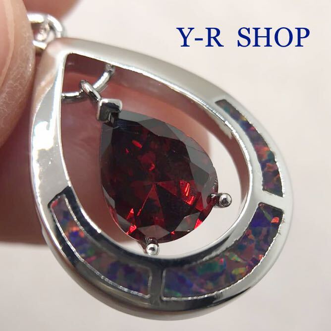 - ガーネットとダークパープルファイヤーオパール のエレガントペンダントトップ ★レディースネックレスシルバー925刻印ハワイアン新品宝石