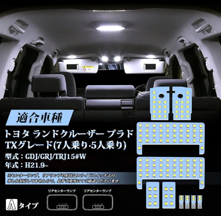 - プラド 150系 LEDルームランプ TXグレード(7人/5人乗り)用 ホワイト