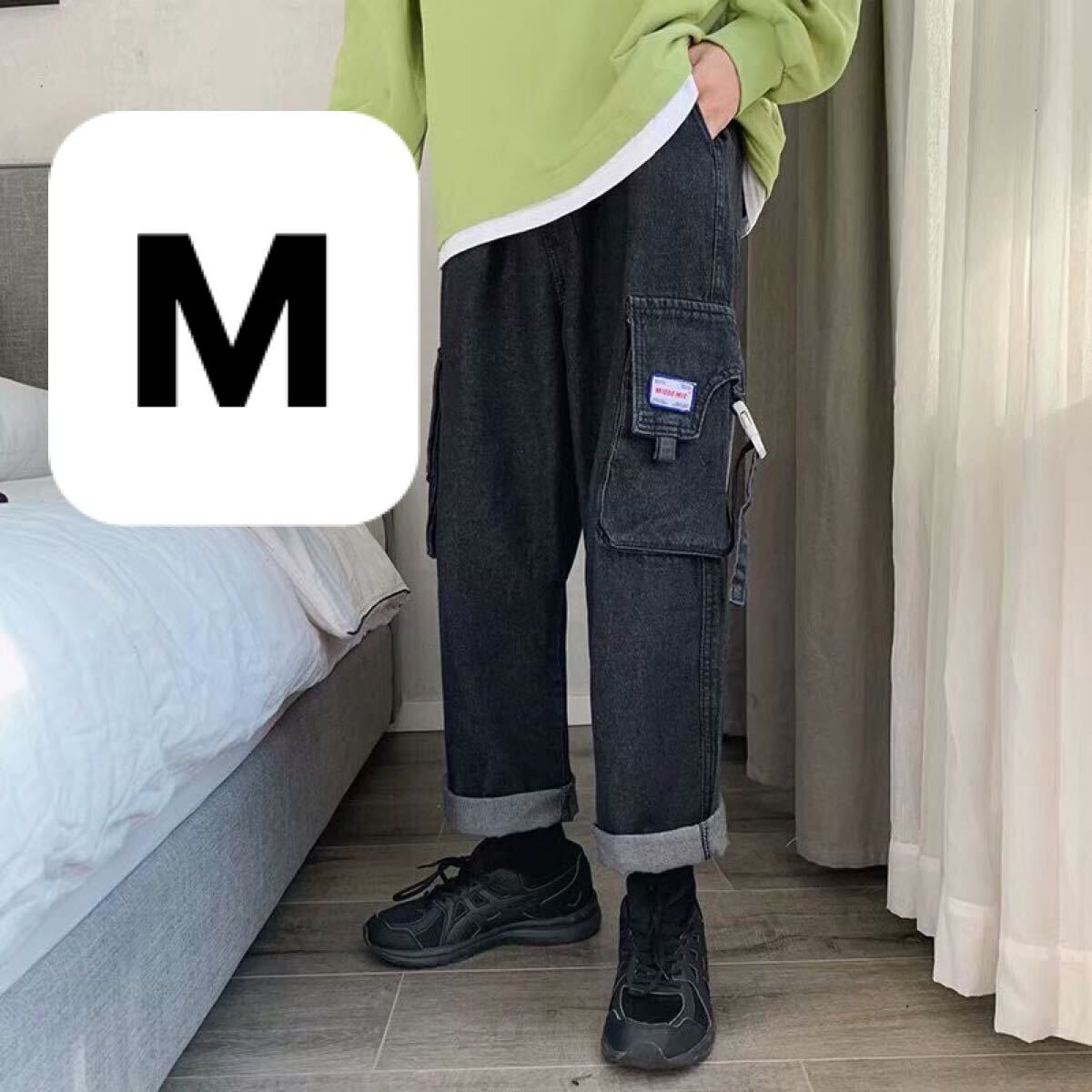 > デニム ワイドパンツ ジーンズ ボトムス ストレートパンツ ルーズパンツ ワイドデニム トレンド ストリート デニム ワイド ブラック 黒 M