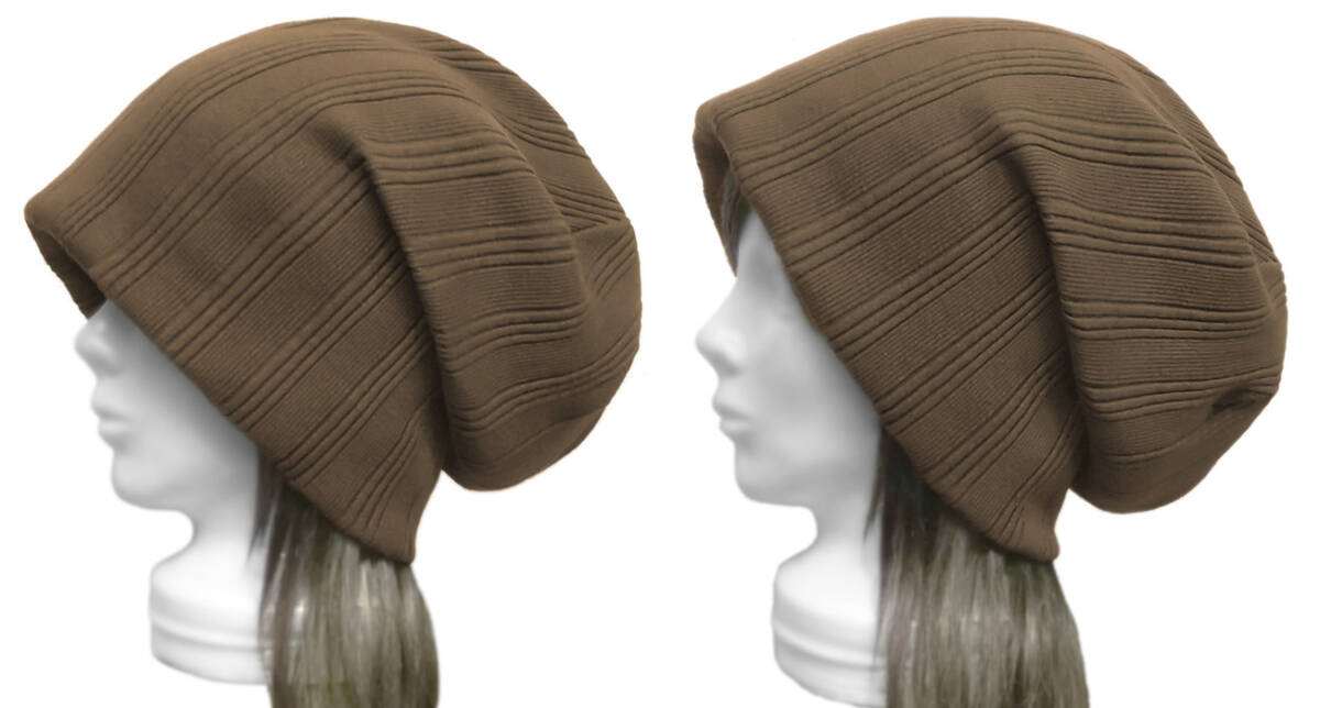 > ◇送料無料◇ ハンドメイド◆深め・ゆったりワッチキャップ◆変りリブ織コットンニット/カーキ系 ◇小顔効果・長いシーズン着用◇