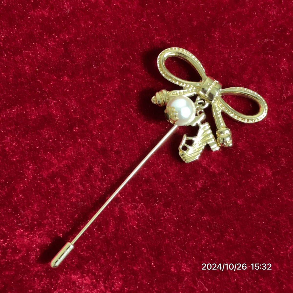 - Ferragamo サルヴァトーレフェラガモ リボン パール風 サンダル ゴールドカラー ピン ブローチ アクセサリー