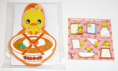 > 2点セット☆レア・非売品☆チキンラーメン「ひよこちゃん タオルホルダー カラビナ付き」&「お名前シール・イケテルくん【未使用】日清