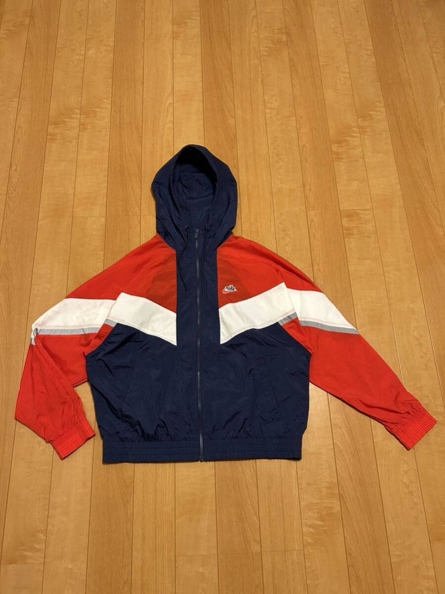 - 美品☆ナイキ オーバーサイズM大き目 フルジップ.シャカシャカ切替ナイロンパーカジャケット 希少.筆記体ロゴ ビンテージ90sシルエット!