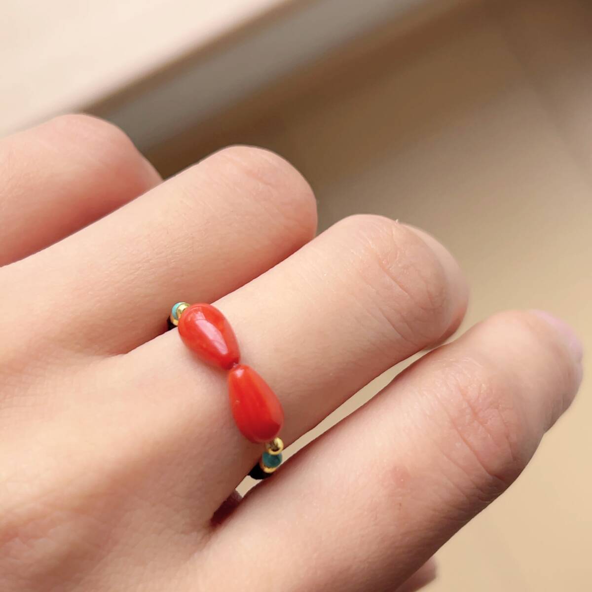 > ◇ブラックスピネル+ターコイズ+赤珊瑚◇リング◇指輪◇パワーストーン◇天然石◇巾着袋付き◇プレゼントにも 020R10283
