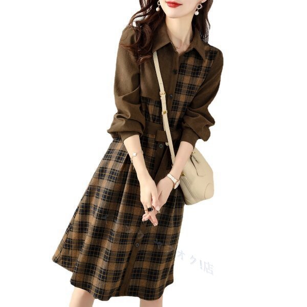 - 新品☆ワンピース レディース チェック柄 シャツワンピース きれいめ 秋服 長袖 リボンスカート オシャレ 体型カバーS-2XL