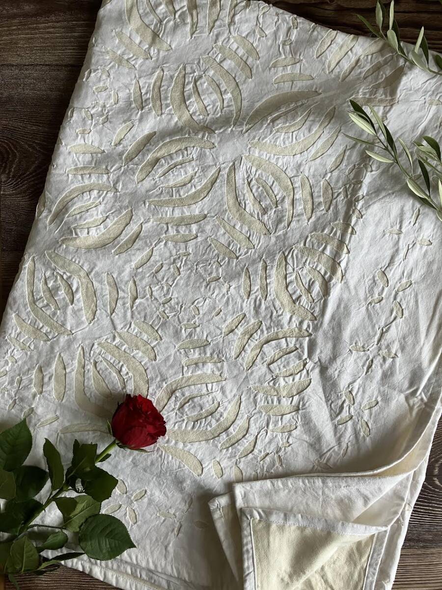 - ハンドメイド カットワーク マルチカバー コットン100% ナチュラルカラー #A2