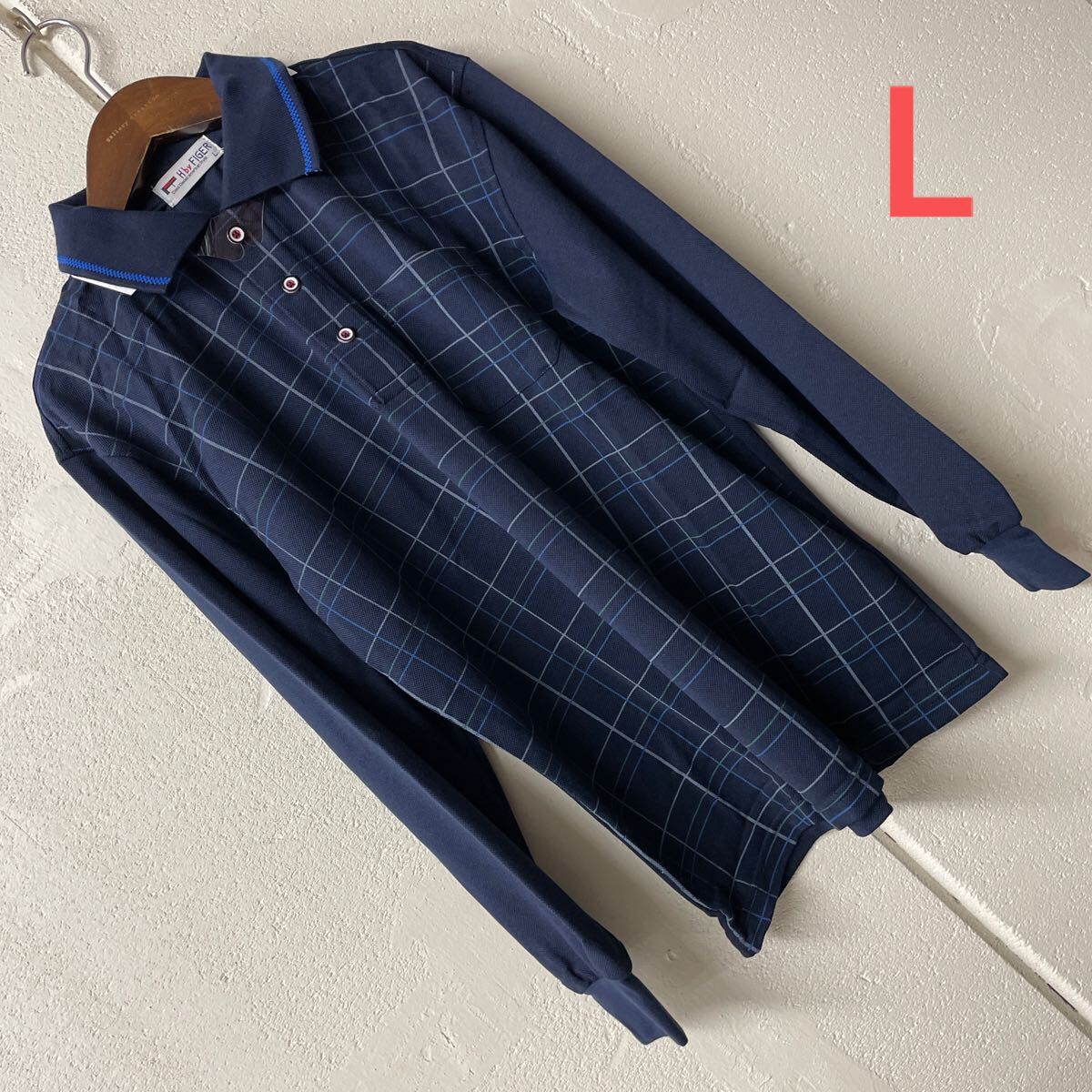 - Lサイズメンズ胸ポケット長袖ポロシャツ ネイビー
