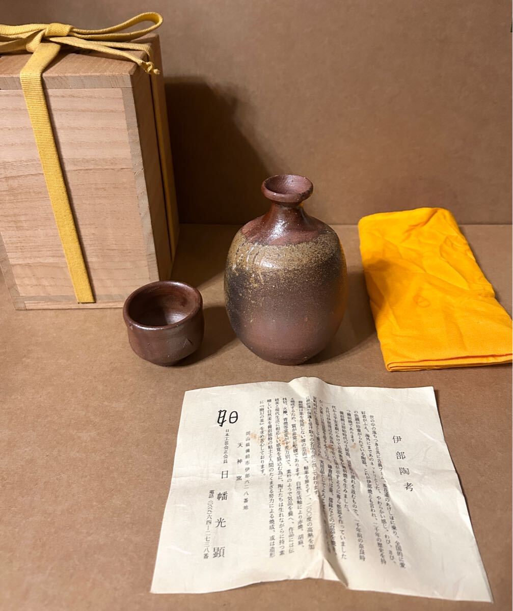 - 日幡光顕 天神窯 備前焼 徳利 酒器 ぐい呑 伊部焼 共箱 共布 栞