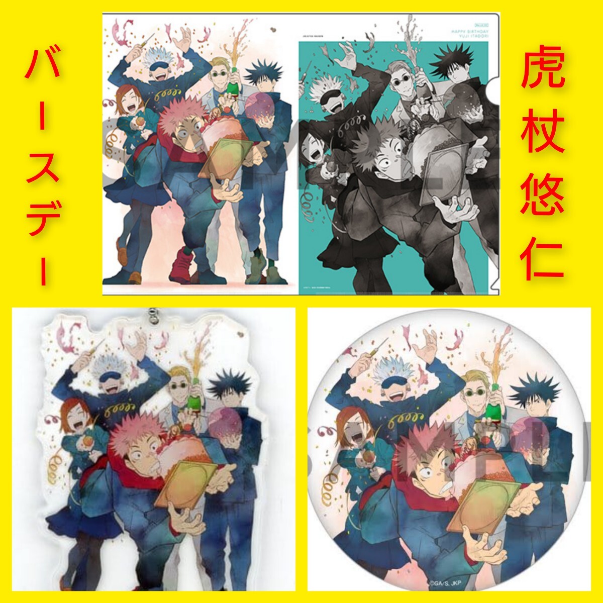 - 虎杖悠仁 BIRTHDAY アクリルスタンドキーホルダー デカ缶バッジ クリアファイル 「呪術廻戦」 MAPPA SHOW CASEグッズ レア 3点セット