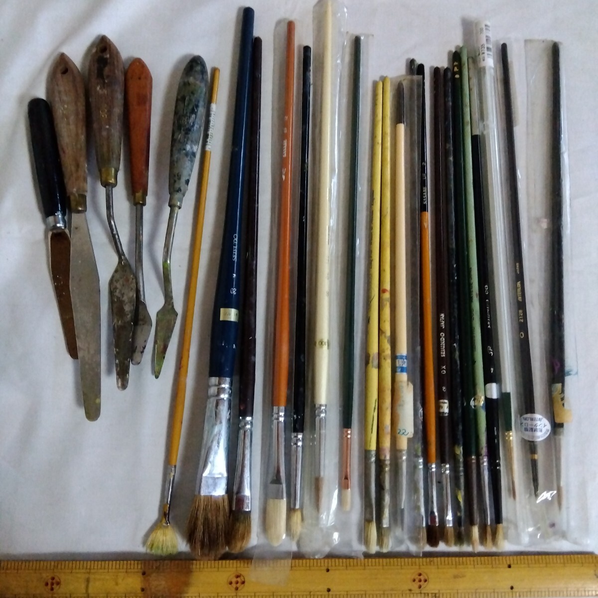 - 絵筆 20本(未使用7含) プラスペインティングナイフ5 合計25本