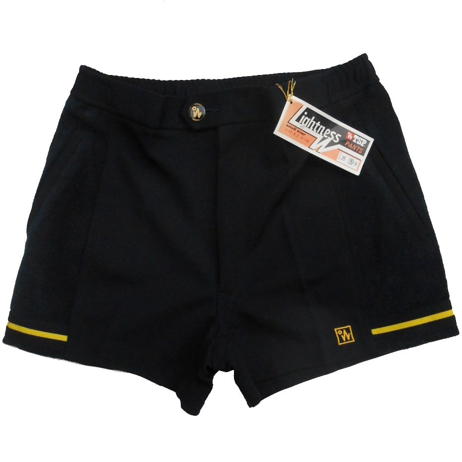 > 未使用 '80s TSP ヤマト M ショートパンツ エステルジャージ×パイル 切り替えデザイン 黒x黄色 ブラック イエロー 日本製 デッドストック