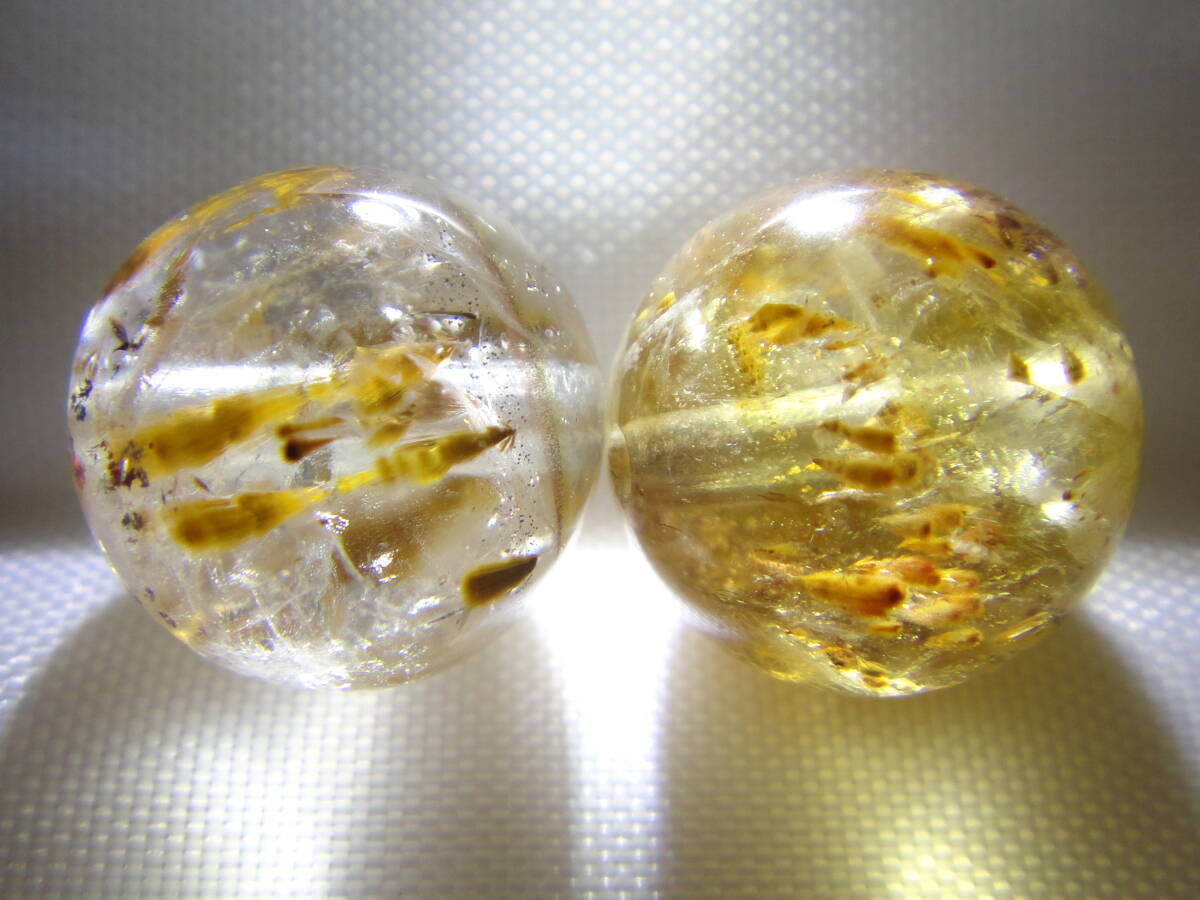 - 天然石 高品質! カコクセナイト 約9.2㎜玉 2個セット Y399