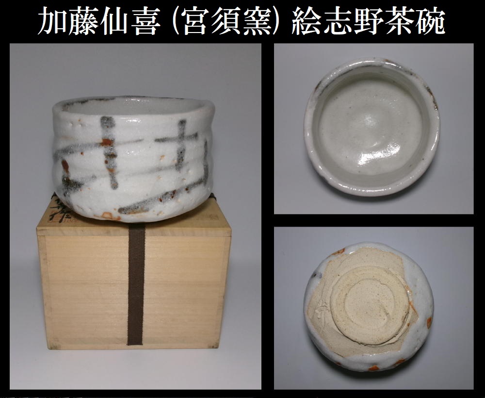 - 【真作保証】加藤仙喜 (宮須窯) 絵志野茶碗