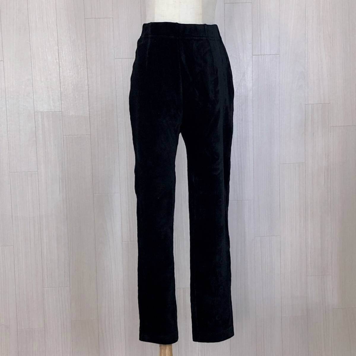 - YZ0268 美品 courreges クレージュ レディース ボトムス カジュアルパンツ ロング丈 ストレッチ ベロア ブラック 黒 綿 コットン 上品 秋冬