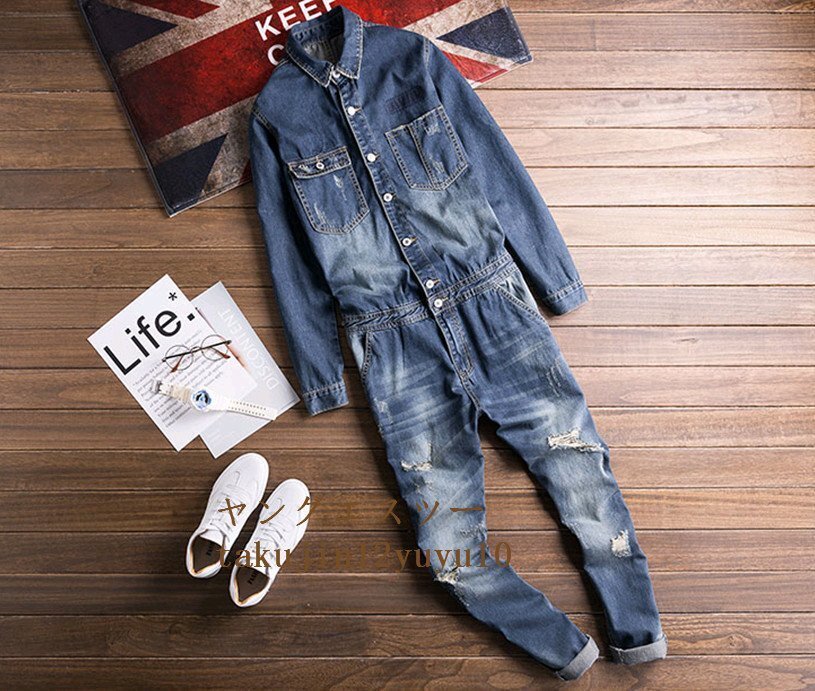 - オーバーオール 新品 メンズ サロペット つなぎ ズボン 作業服サスペンダー 高品質 デニムパンツ 長袖ヴィンテージ 細身 カーゴパンツ M