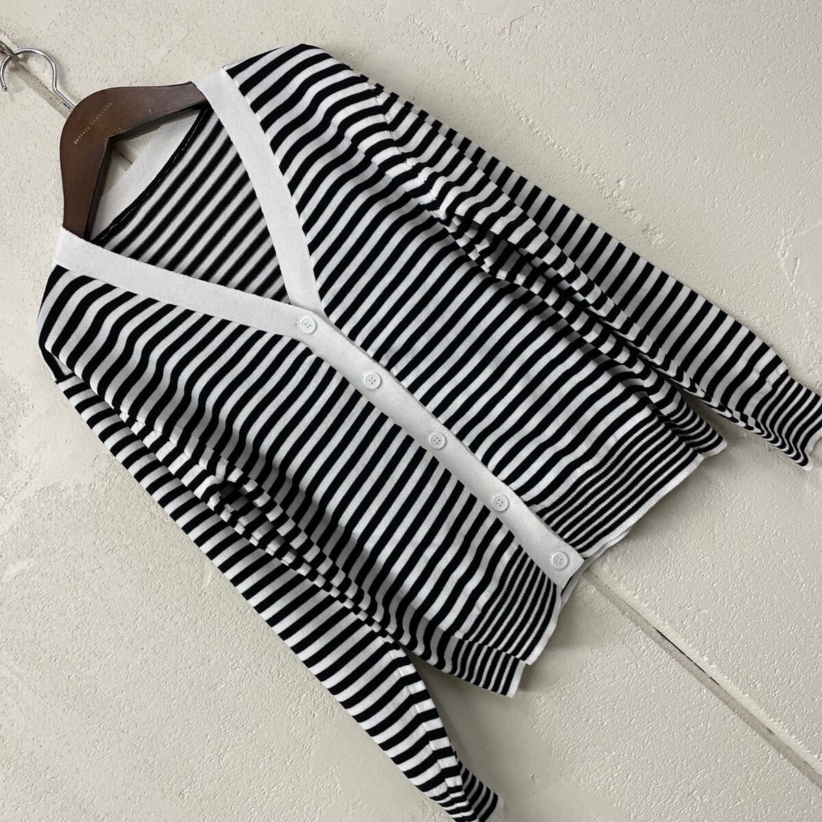 - 訳ありサラサラニット前ボタンカーディガン ボーダー黒