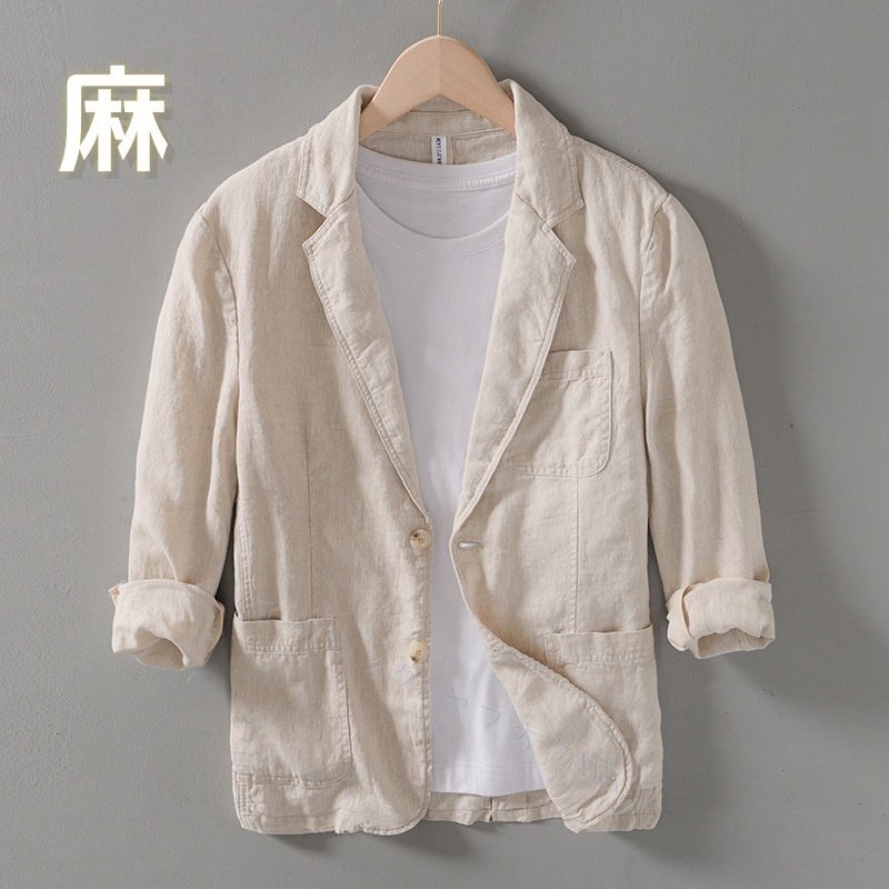 - ☆新品 テーラードジャケット メンズ 麻100% ブレザー サマージャケット 春秋 リネン 速乾 無地 涼しい カジュアル カーキ L