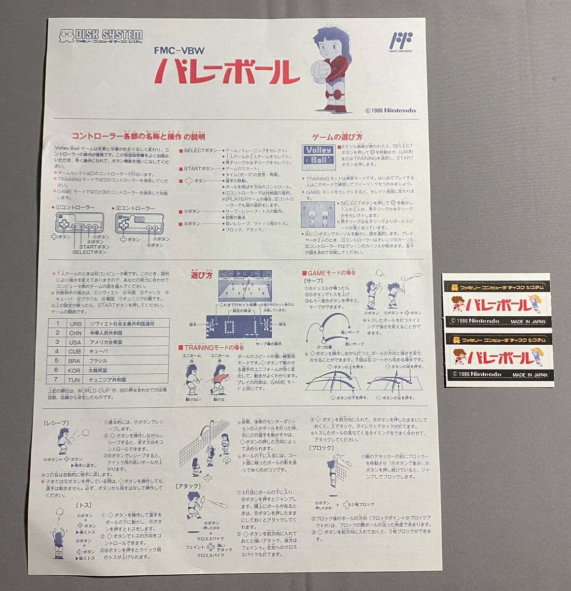 - 任天堂 バレーボール☆書き換え用説明書&ラベルシール☆ファミコン ディスクシステム