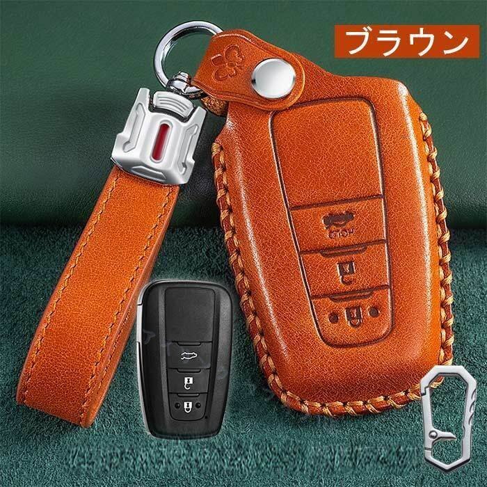> トヨタ 対応 スマートキーケース TOYOTA キーケース キーカバー 牛革 新型カローラ/新型RAV4/新型クラウン 220系/70系カムリ ☆ブラウン