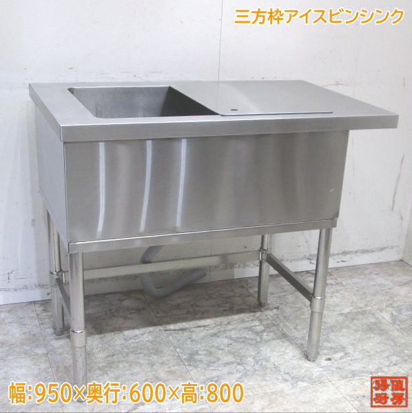 > ステンレス 三方枠アイスビンシンク 950×600×800 業務用流し台 中古厨房 /24A1513Z