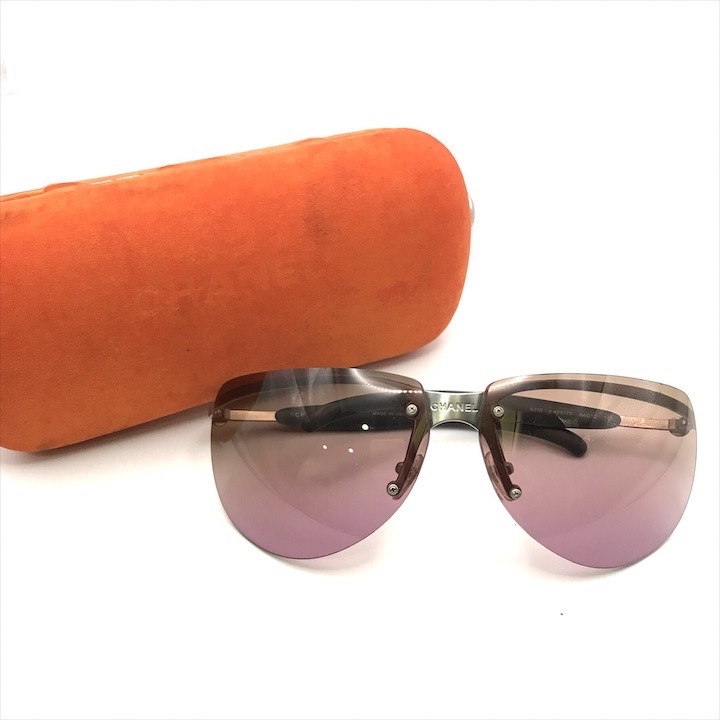 - 良品 CHANEL シャネル ココマーク サングラス アイウェア ロゴ刻印 パープル シルバー k4256
