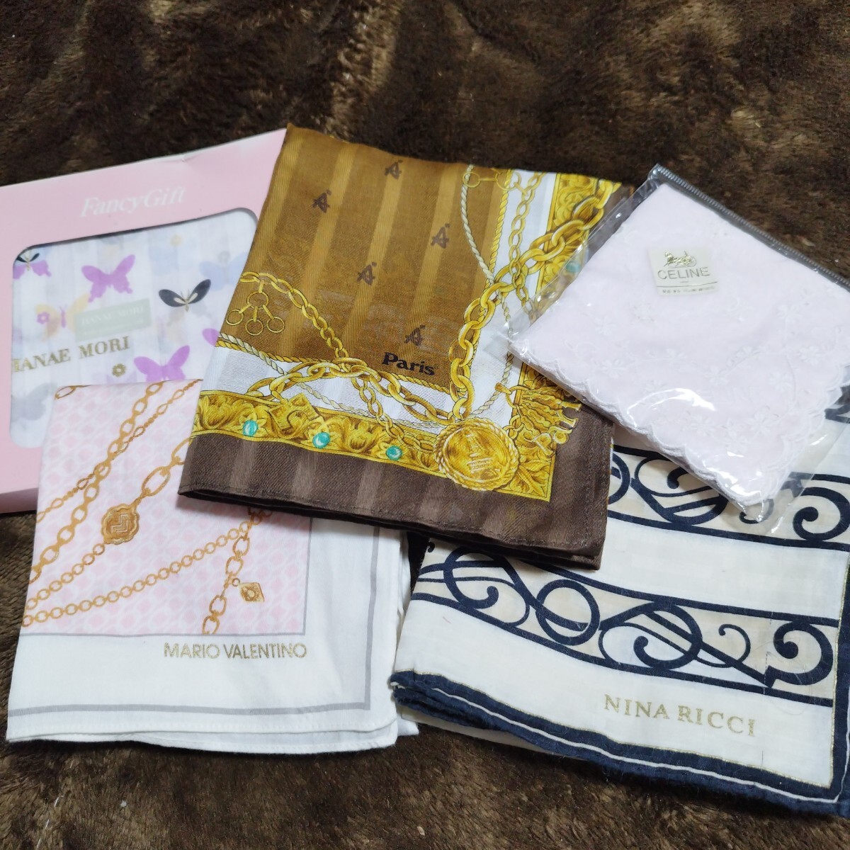 - ハンカチ まとめて セリーヌ CELINE ニナ・リッチ マリオバレンチノ ハナエモリ ブランドハンカチ