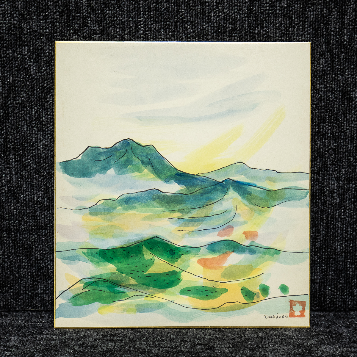 - 色紙ー1532 増田勉 山風景 二科会 広島の画家【真作】