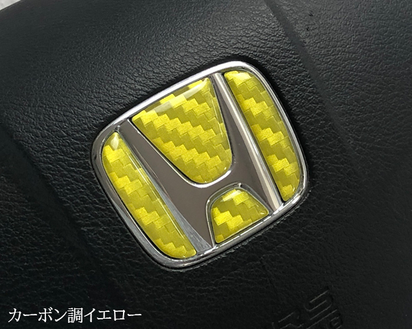 - ホンダ ステアリング エンブレムシート カーボン調イエロー ハンドル用 SDH-H01 樹脂盛立体3D加工 HONDA ZEROWIN