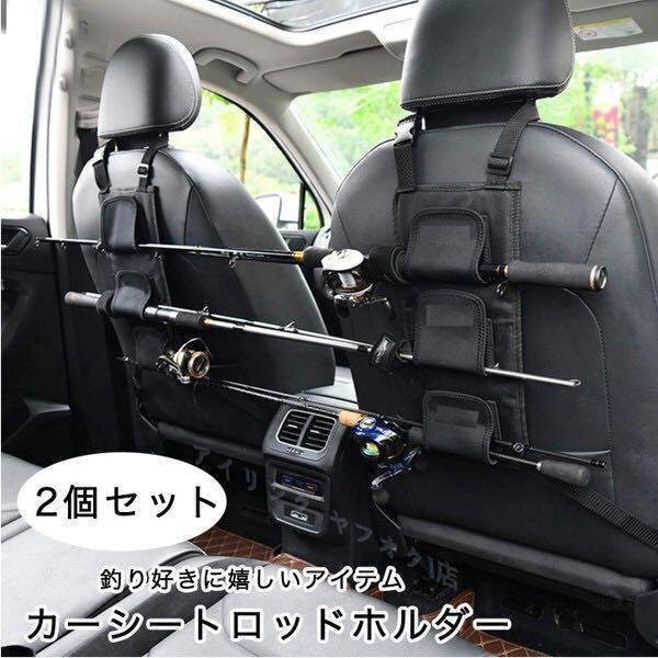 > ☆新品カーシートロッドホルダー 車用 車載 2ピースロッド2個セット 簡単装着 後部座席 工具不要 ヘッドレスト取り付け 収納