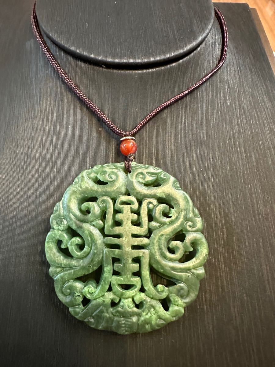 - K-586 天然玉石 古玉 老玉 玉壁 河磨玉 玉佩 ペンダント 風水