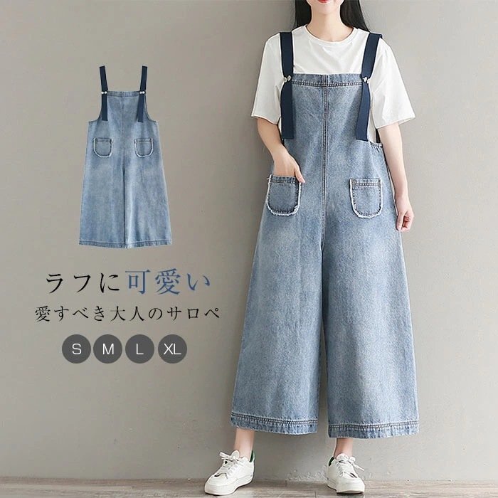 - サロペット レディース オーバーオール デニム オールインワン9分丈 ジーンズ 体型カバー 着痩せ ゆったり ワイドデニムパンツ ★3XLDLY877