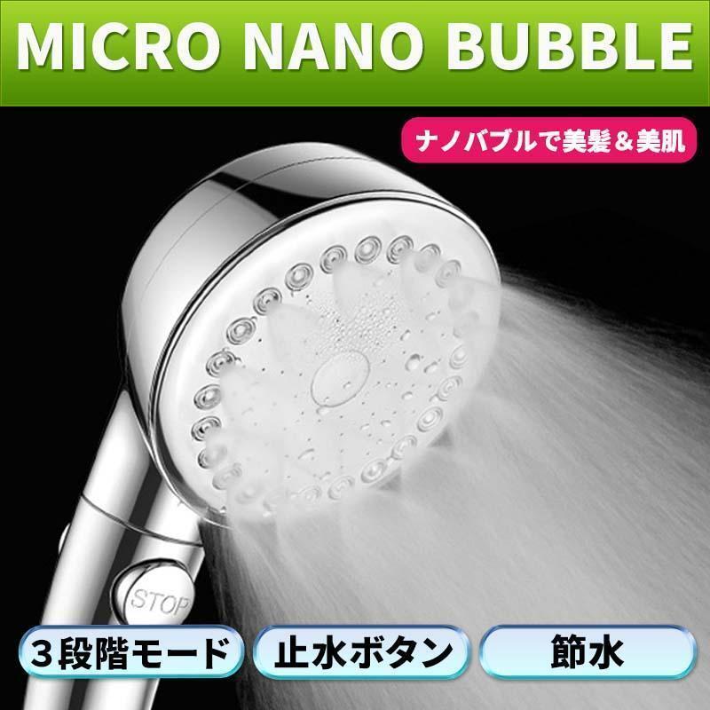 - シャワーヘッド マイクロナノバブル ワンタッチ止水 50% 節水 3モード切替